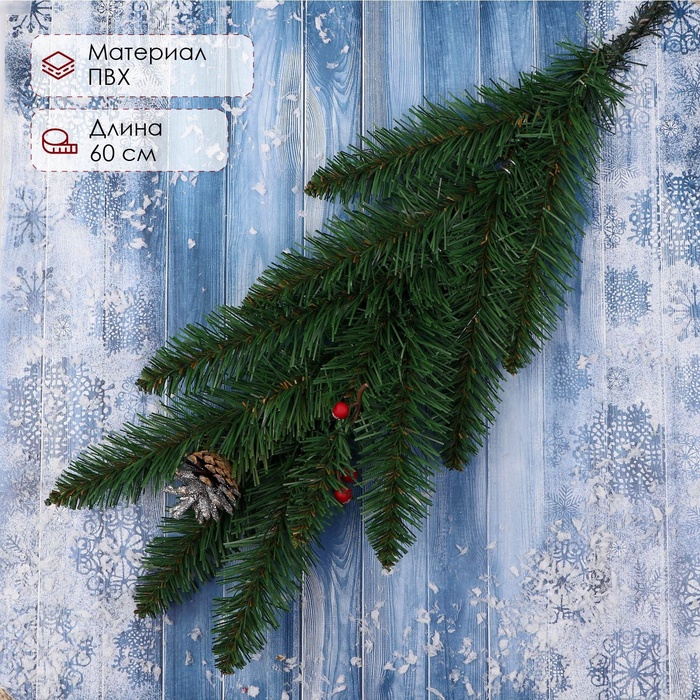 Еловая ветка декоративная «Волшебная», шишки, ягоды, 60 см