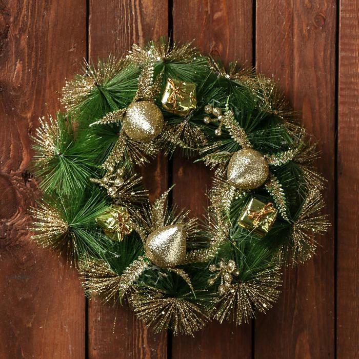 Венок новогодний d=20 см «Зимнее волшебство», золотистый