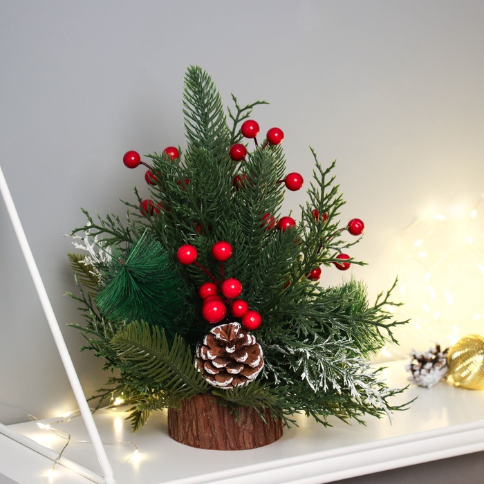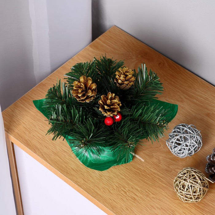 Новогодняя хвойная композиция на стол 20 см «Рождественская», декор шишки золото, ягоды