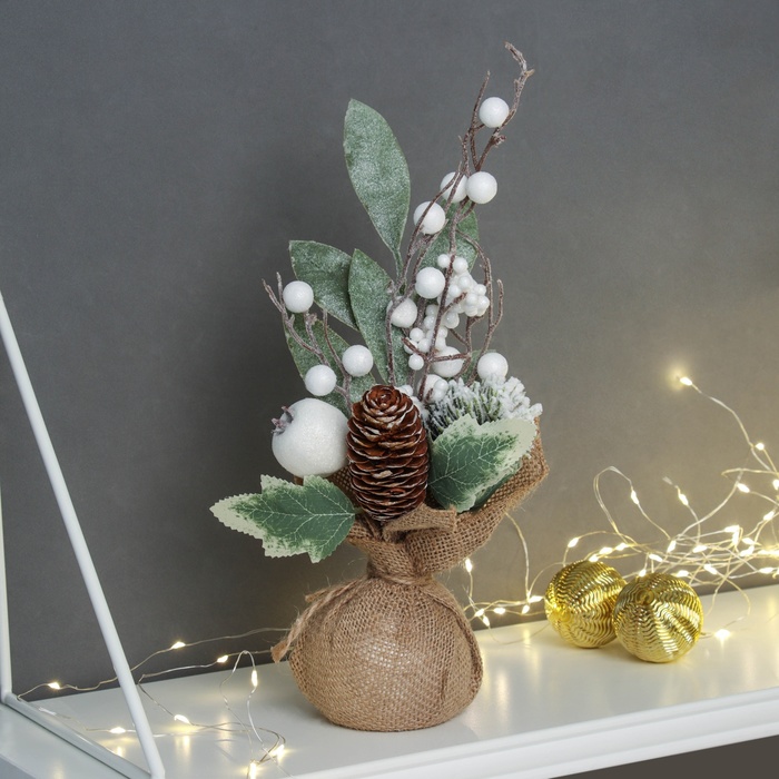 Новогодняя хвойная композиция на стол 20 см «Скандинавия премиум», заснеженная, декор шишки, ягоды