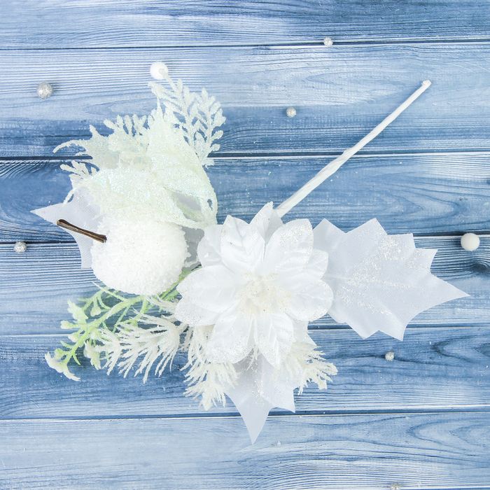 Еловая ветка декоративная «Зимнее волшебство. Грёзы», 15 см