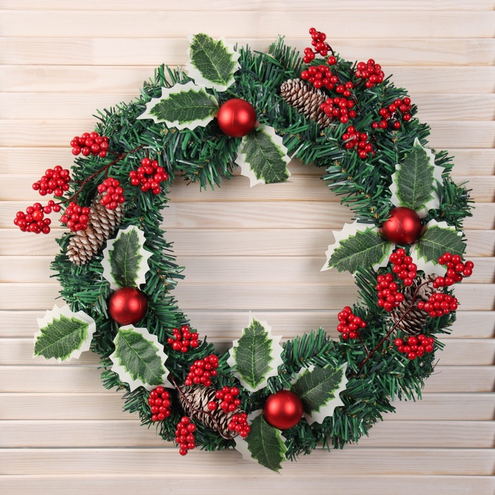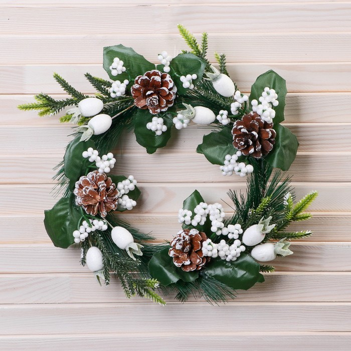 Венок новогодний d=30 см «Зимнее волшебство. Уютная сказка», с листьями и ягодами