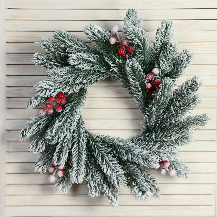 Венок новогодний d=33 см «Зимнее волшебство. Уютная сказка», в снегу, с ягодами