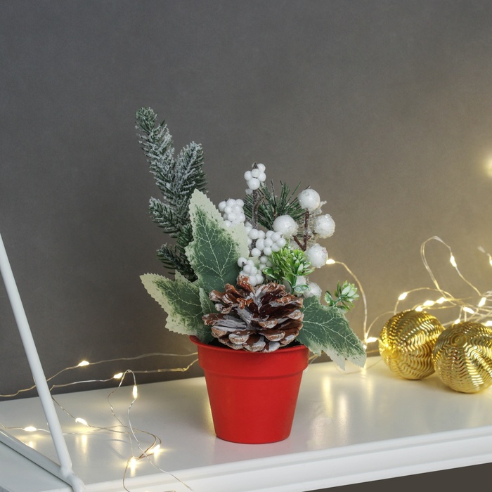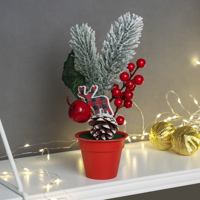 Новогодняя композиция на стол «Зимнее волшебство. Яркий праздник», в горшке, 20×7 см