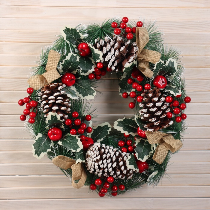 Венок новогодний d=40 см «Зимнее волшебство. Лесной фестиваль», с листьями и ягодами