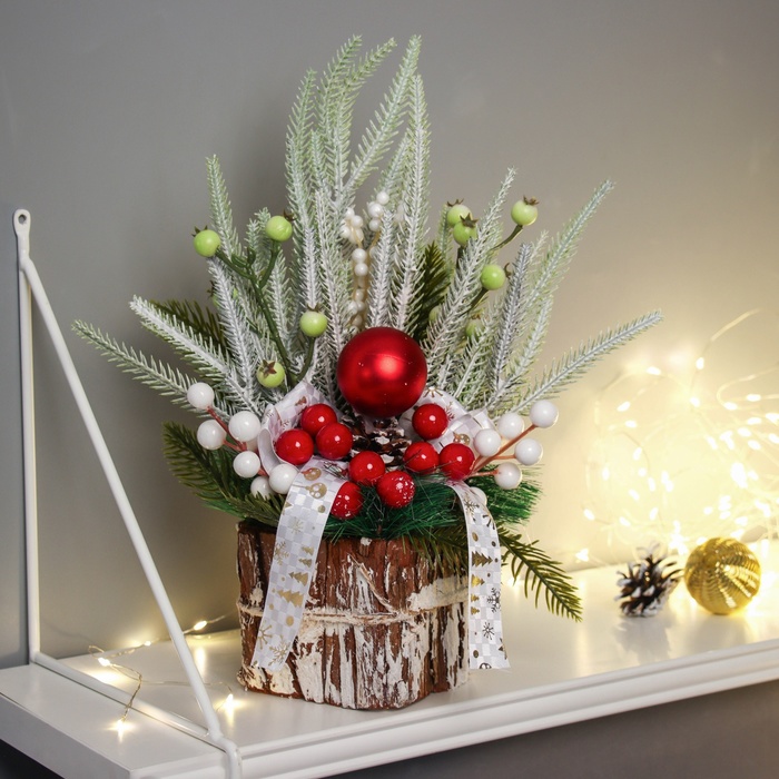 Новогодняя композиция на стол «Зимнее волшебство. Яркий праздник», в горшке, 24×7 см