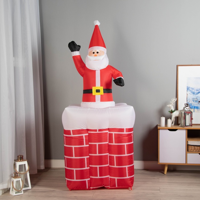 Надувная фигура новогодняя «Зимнее волшебство. Дед Мороз вылезает из трубы», двигается, 150 см