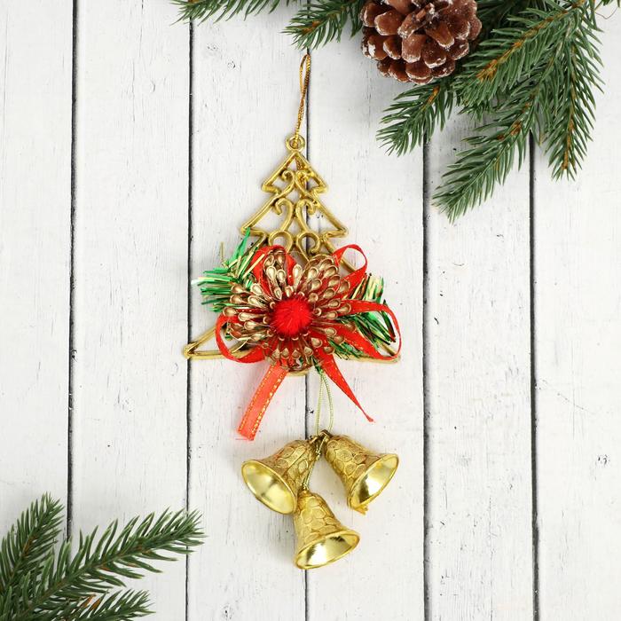 Украшение ёлочное «Зимнее волшебство. Ёлка с колокольчиками», новогоднее, 8×15 см, золотистое