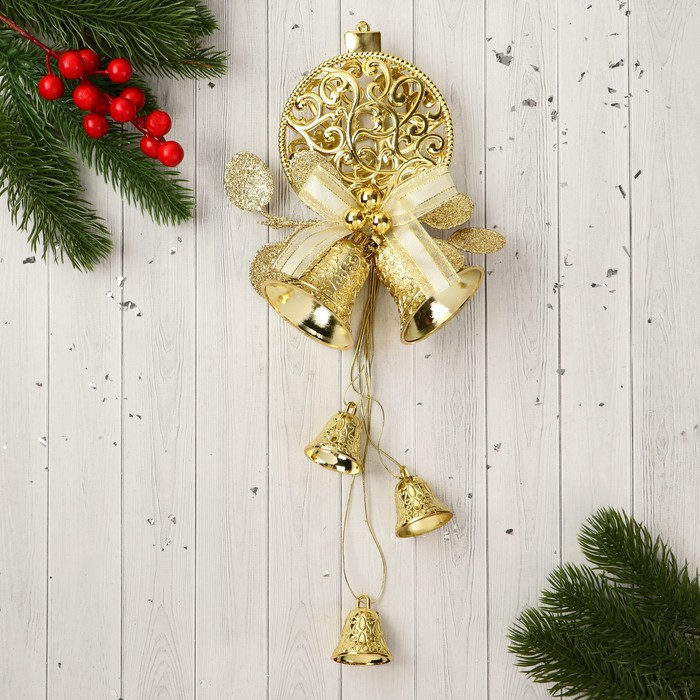 Украшение новогоднее «Зимнее волшебство. Колокольчики узорные с бантом», 9×23 см, золотистый