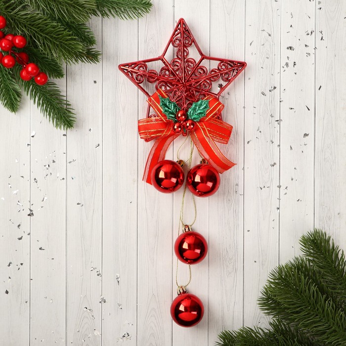 Новогоднее украшение на ёлку «Зимнее волшебство. Уютная сказка» на стену, шарики звёздная звезда, 9х20 см, красный