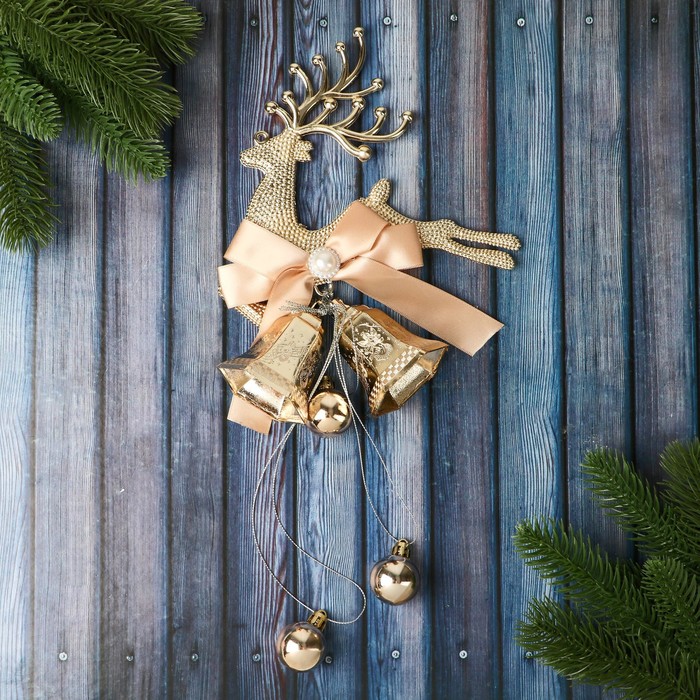Украшение ёлочное «Зимнее волшебство. Колокольчики», новогоднее, 14×33 см, с оленем, золотистое