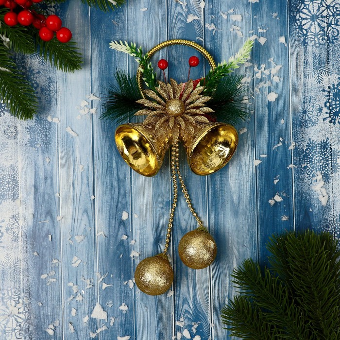 Украшение ёлочное «Зимнее волшебство. Колокольчик», новогоднее, 10×25 см, с цветком и ягодами, золотистое
