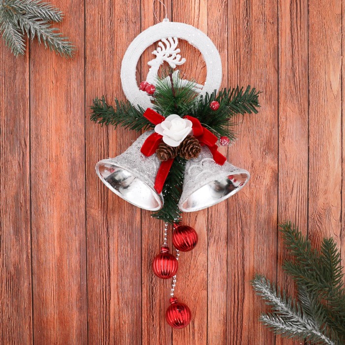 Украшение новогоднее «Зимнее волшебство. Колокольчики» 15×30 см, бело-красный