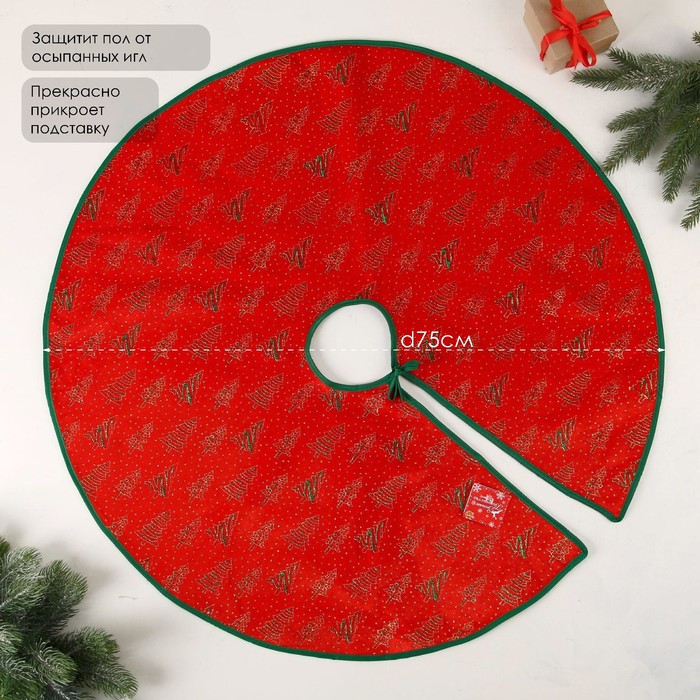 Коврик под ёлку «Ёлочки в снежинках» d=75 см, красно-зелёный