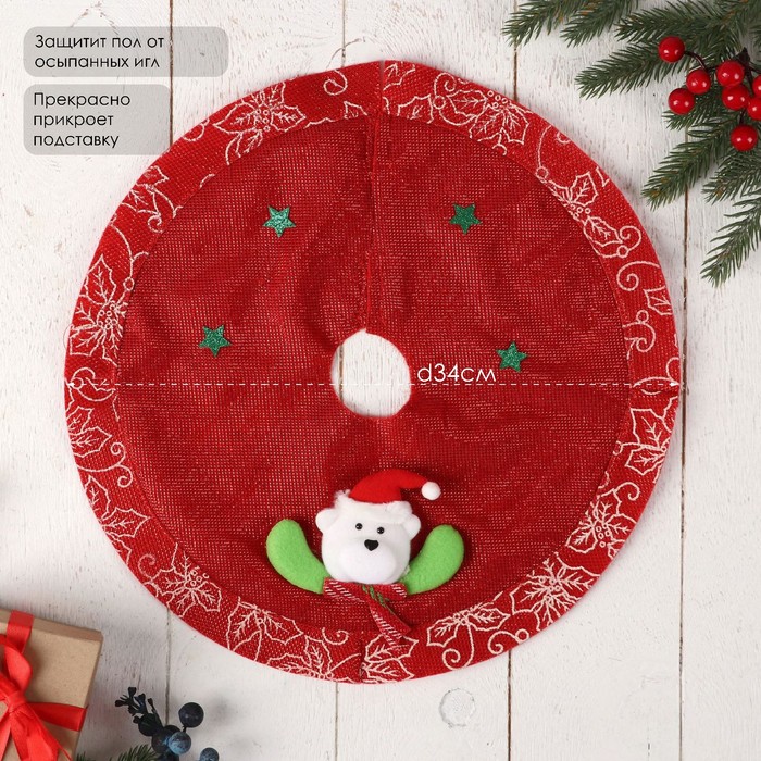 Коврик под ёлку «Мишка в звёздах» d=34 см, красный