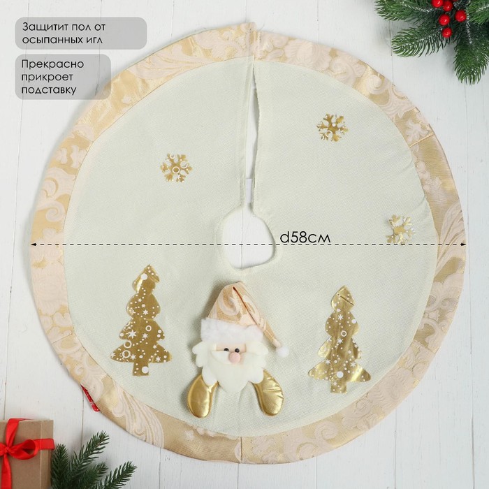 Коврик под ёлку «Дед Мороз и ёлочки» d=58 см, бело-золотой