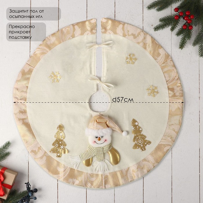 Коврик под ёлку «Снеговик и ёлочки» d=57 см, бело-золотой