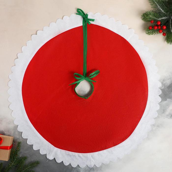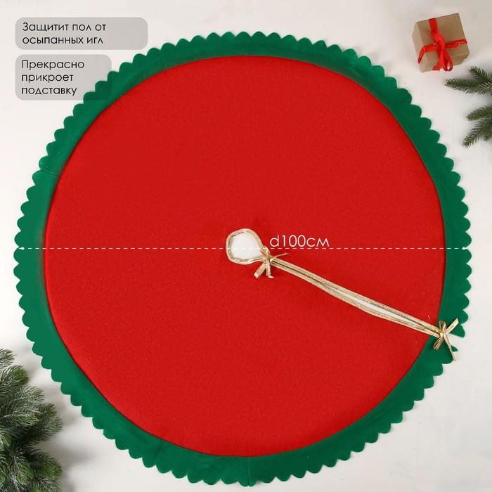 Коврик под ёлку «Зелёные рюши» 100 см, красно-зелёный