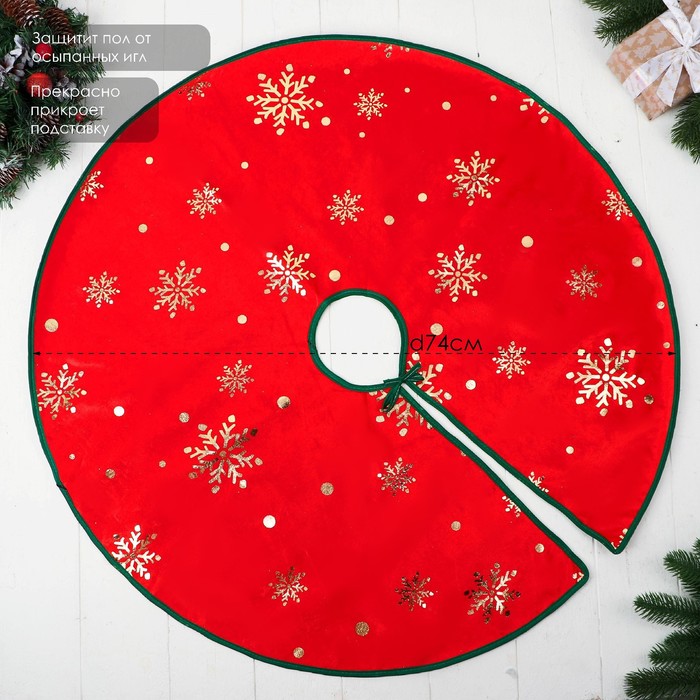 Коврик под ёлку «Уютная сказка» снежинка, d=74 см, красный