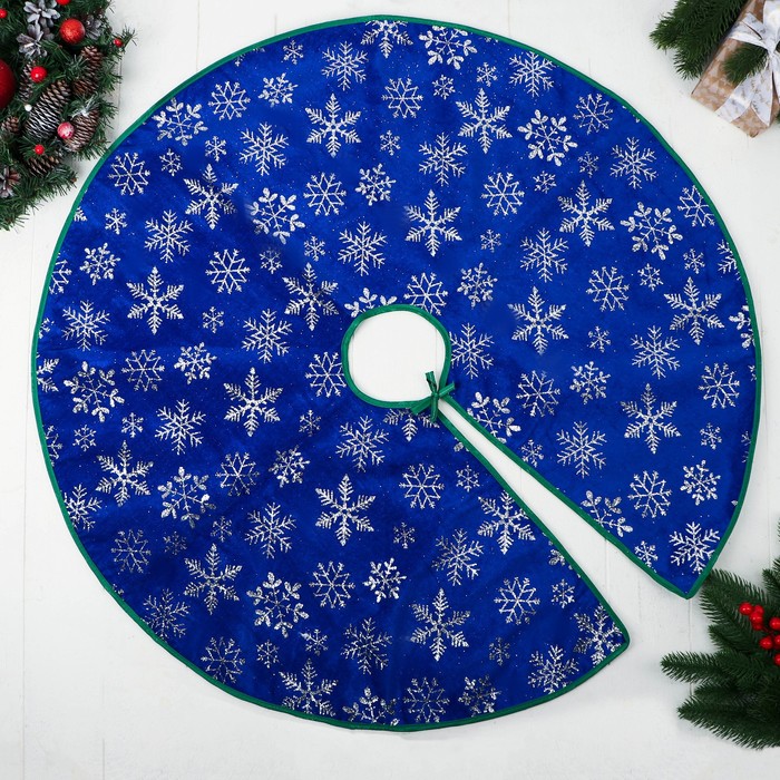 Коврик под ёлку «Уютная сказка» снежинка, d=87 см, синий