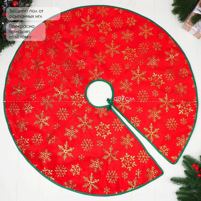 Коврик под ёлку «Уютная сказка» снежинка, d=87 см, красный