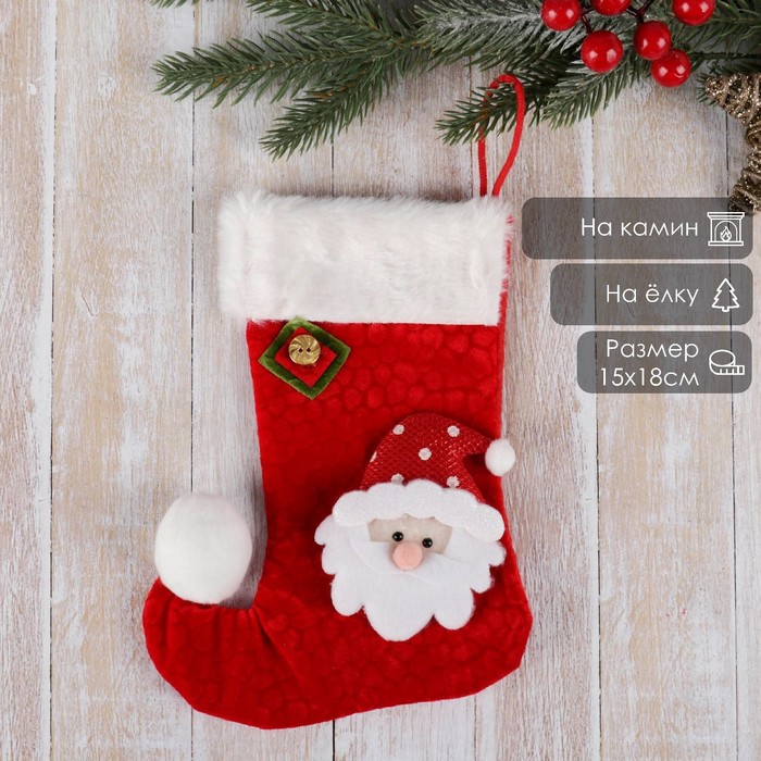 Носок для подарков «Помпошка» Дед Мороз в колпаке, 15×18 см, красный
