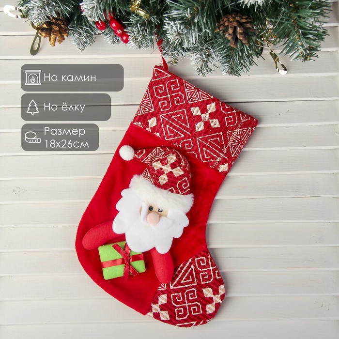 Носок для подарков «Дед Мороз» 18.5×26 см, красный