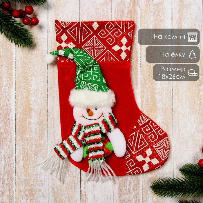 Носок для подарков «Снеговичок» 18×25 см, красный/зелёный