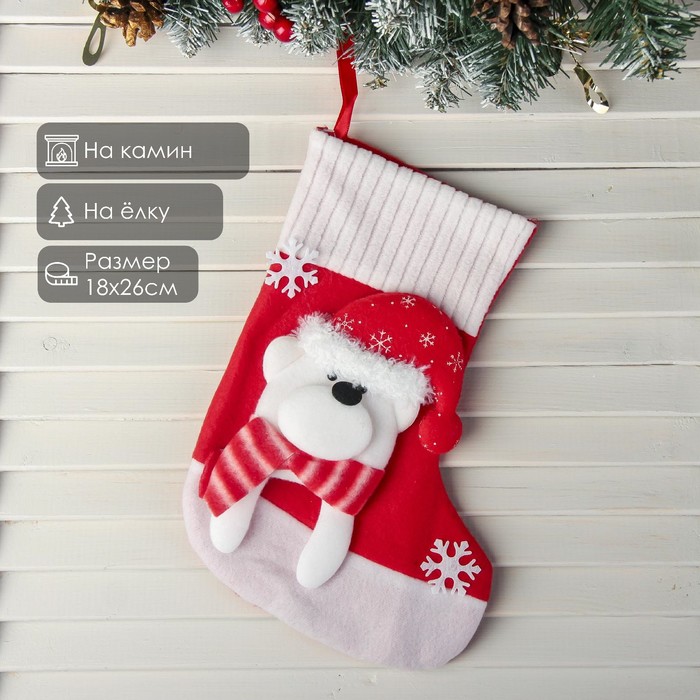 Носок для подарков «Снегопад» с медведем, 18×26 см, красный