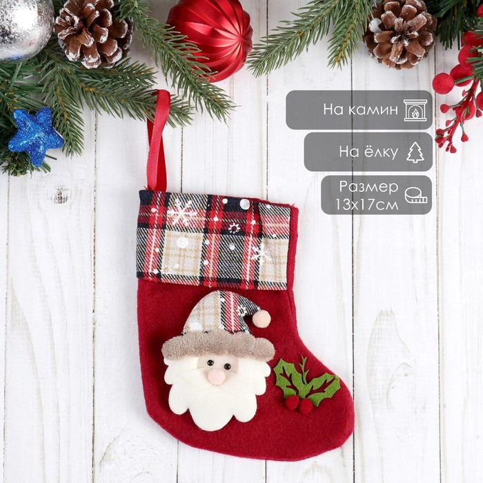 Носок для подарков «Дед Мороз в колпаке», 13×17 см, красный