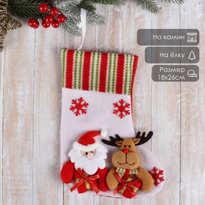 Носок для подарков «Дед Мороз с оленем» 26×18 см, красный