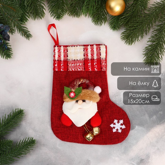 Носок для подарков «Дед Мороз с колокольчиками», 15×20 см, красный