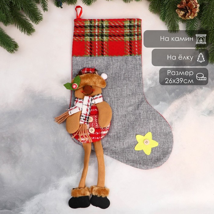 Носок для подарков «Лосяш с длинными ножками и звёздочкой» 26×39 см, серый