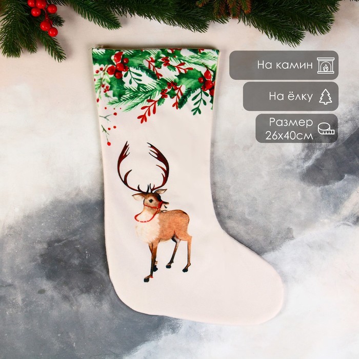 Носок для подарков «Олень в лесу» 26×40 см, белый