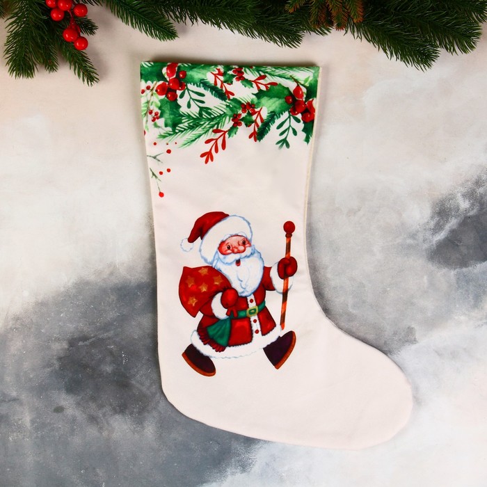 Носок для подарков «Дед Мороз с посохом» 26×40 см, белый