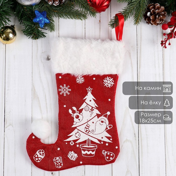Носок для подарков «Волшебство. Ёлочка с подарками», 18×25 см, красный