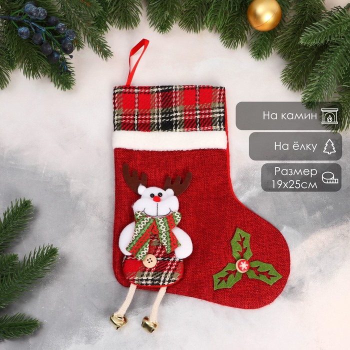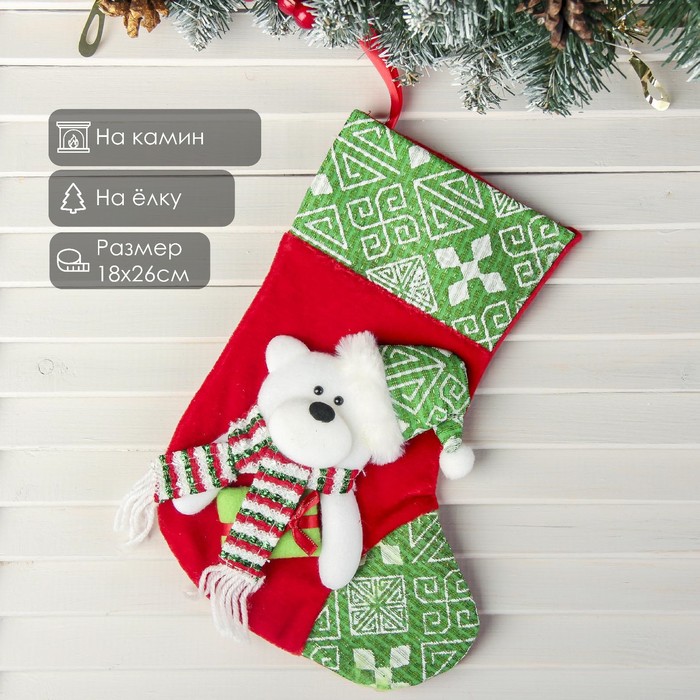 Носок для подарков «Медведь» 18.5×26 см, красный/зелёный