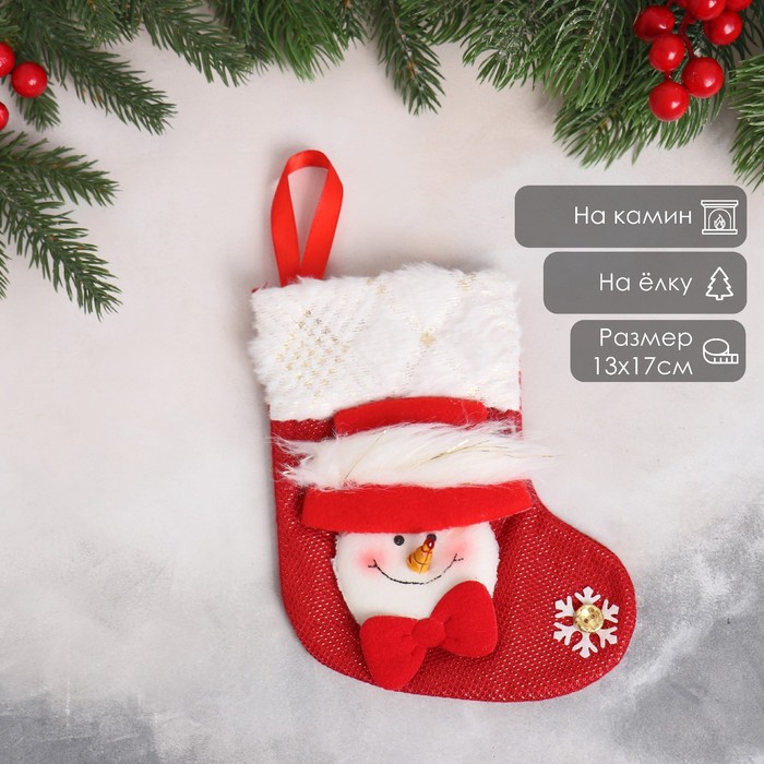 Носок для подарков «Снеговик» 18.5×26 см, красный