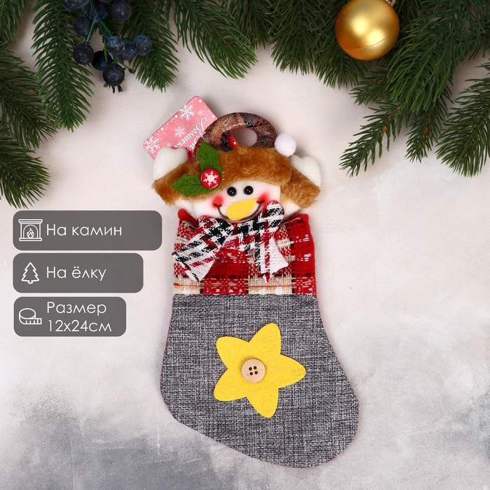 Носок для подарков «Снеговик и звёздочка с пуговкой» 12×24 см, серый