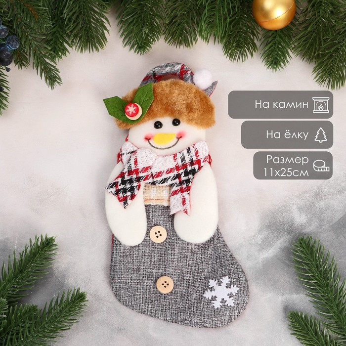Носок для подарков «Снеговик с ягодкой» 11×26 см, серый