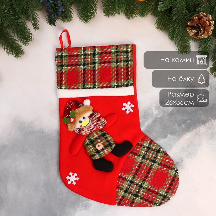 Носок для подарков «Снеговик» 36×26 см, красно - зелёный