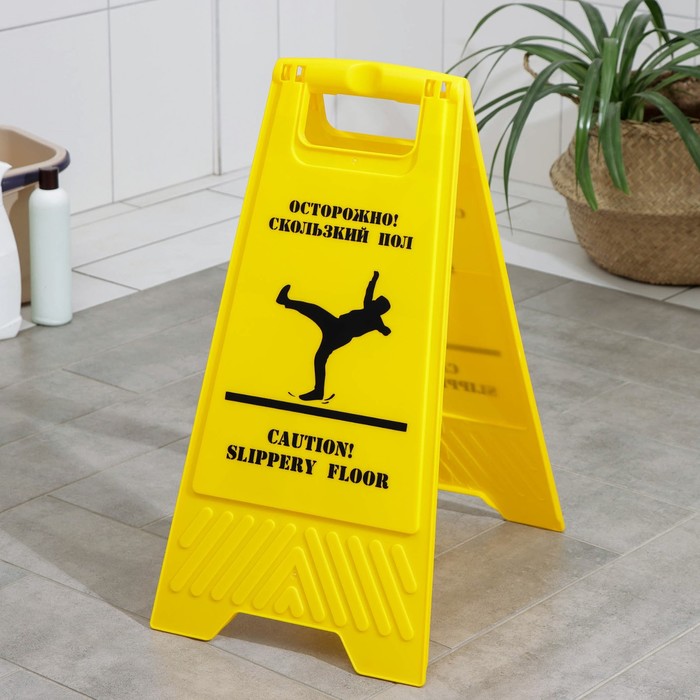 Знак «Осторожно! Скользкий пол», 61×30 см, пластик, цвет жёлтый
