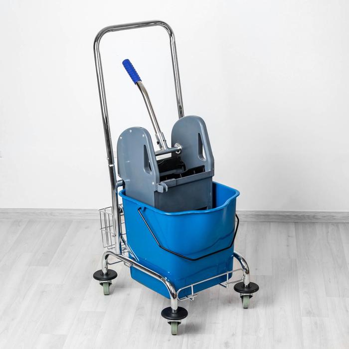 Тележка уборочная одноведерная, с отжимом, 23 л, хромированная рама