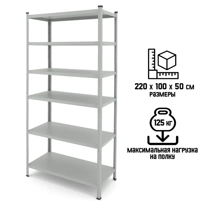 Стеллаж металлический для склада Everest-150, 6 полок, 220×100×50 см, серый