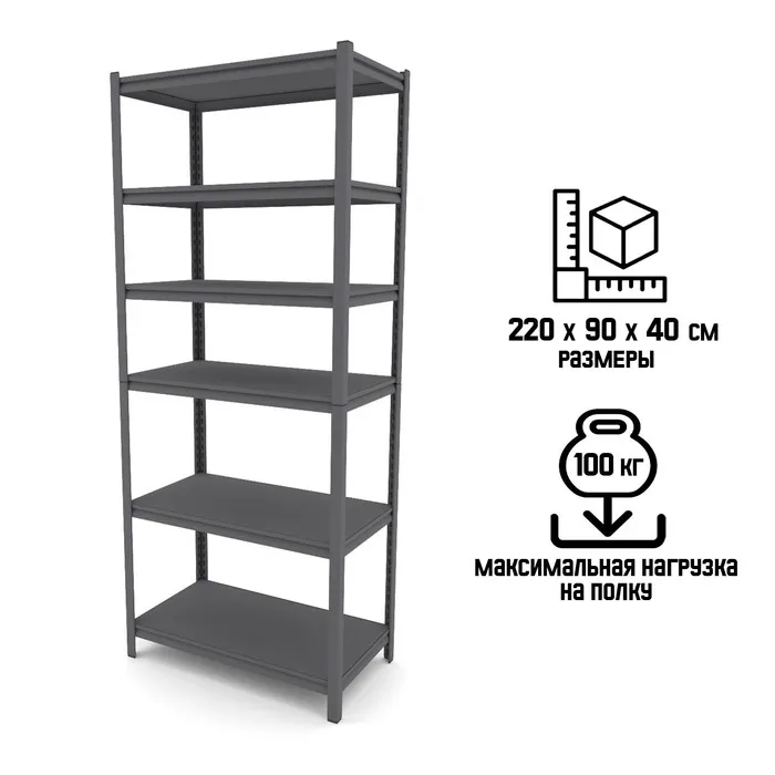 Стеллаж металлический для склада Everest Beamy Luxe-100, 6 полок, разборный, 220×90×40 см, тёмно-серый