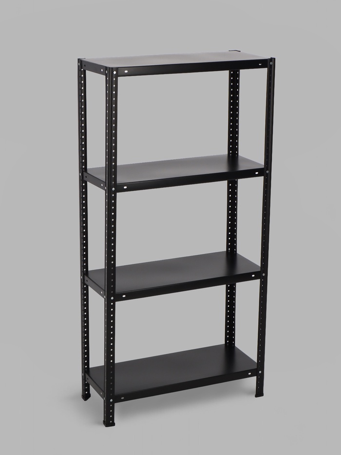 Стеллаж металлический для склада напольный, 4 полки, дерево, 150×70×30 см, чёрный