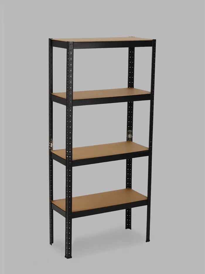 Стеллаж металлический для склада, 4 полки, дерево, 150×75×30 см, чёрный