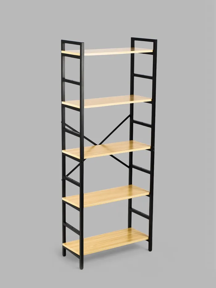 Стеллаж металлический для склада напольный, 5 полок, дерево, 151×60×28 см, чёрный