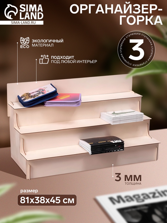 Горка 3 ступеньки 81×38×45 см, толщина 3 мм, бежевая