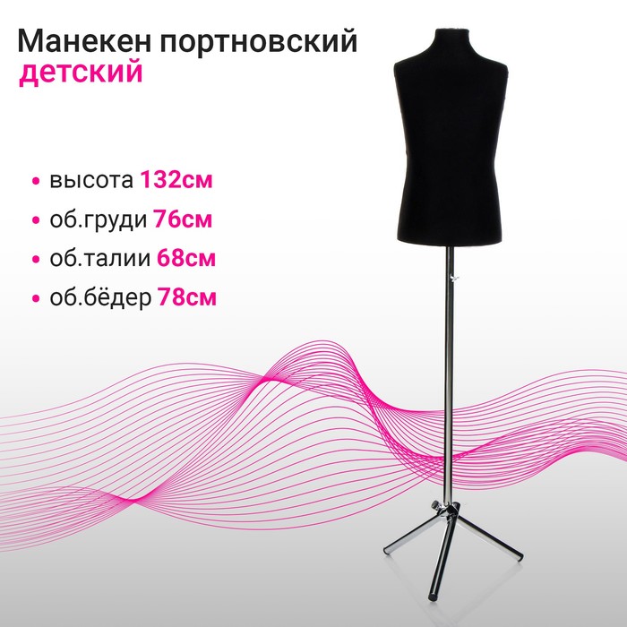 Манекен портновский на хромированной стойке «Детский» 76×68×78 см, длина 55, цвет чёрный